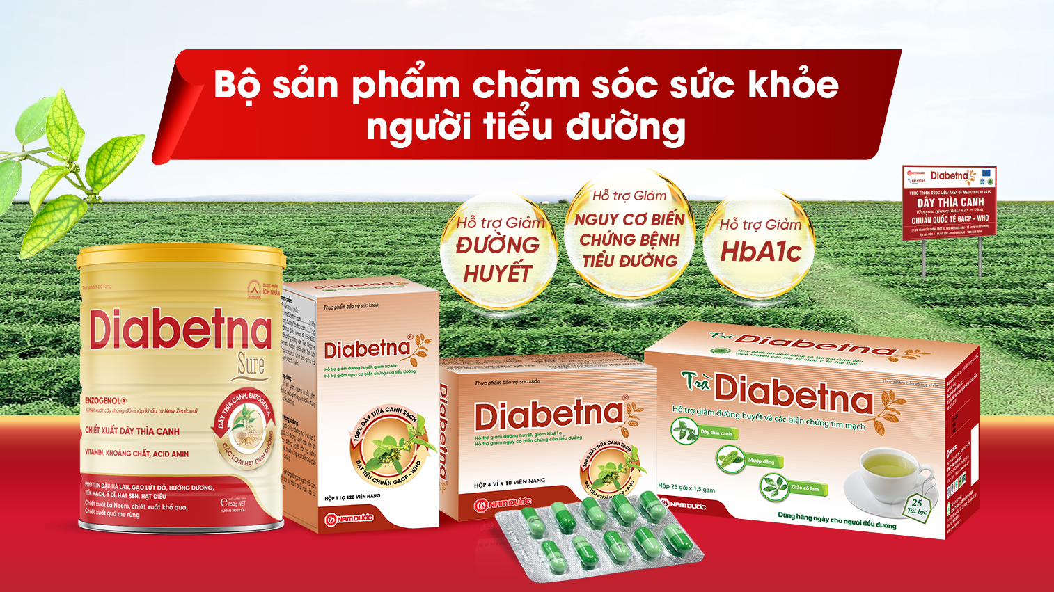 TPBVSK Diabetna có tác dụng hỗ trợ giảm đường huyết, hỗ trợ giảm HbA1c và hỗ trợ giảm nguy cơ biến chứng tiểu đường. Diabetna chiết xuất từ Dây thìa canh với vùng trồng đạt chuẩn GACP-WHO, cùng dây chuyền sản xuất hiện đại chuẩn GMP-WHO. Tính đến nay, Diabetna đã có 19 năm lưu hành trên thị trường và được nhiều người đái tháo đường tin dùng. Vì vậy, việc kết hợp TPBVSK Diabetna và thuốc Tây y chính là giải pháp hỗ trợ người tiểu đường kiểm soát đường huyết ổn định lâu dài – đặc biệt với người trung niên và cao tuổi.